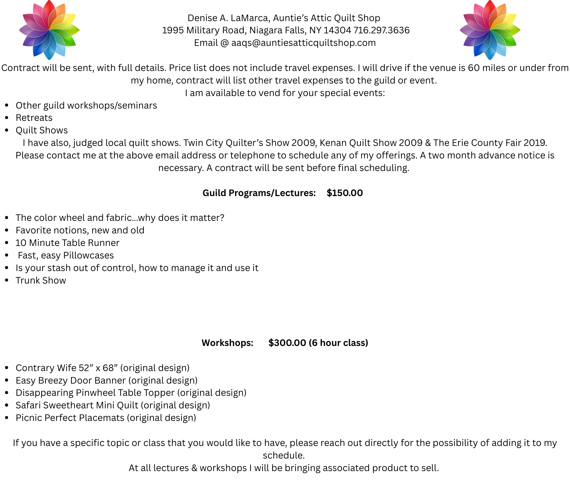 Are you interested in having Denise of Auntie's Attic Design Studio come to lecture or teach at your event? Just request a copy of the current topics list here: LIST